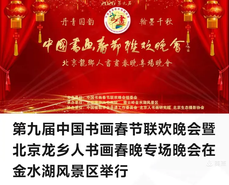2026年1月25日,第九届中国书画春节联欢晚会的重要专题活动——“北京龙乡人书画春晚专场”在北京房山金水湖畔隆重举行。
